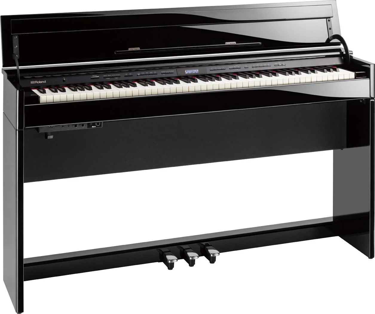 Niemand möchte das sorgsam komponierte und perfektionierte Ambiente der eigenen vier Wände mit einem klobigen, altmodisch anmutenden Piano verunstalten. Hier schafft das Roland DP603, dessen stylisches Gehäuse und minimalistisches Design sich perfekt in moderne Wohnräume einfügen, Abhilfe. Mit seiner SuperNATURAL Piano-Klangerzeugung, die einen vollen, authentischen Sound schafft und seiner PHA-50 Tastatur, die jede Nuance des Spiels aufnimmt und wiedergibt, bietet das DP603 eine superbes Spielerlebnis. Neben einer Vielzahl an Funktionen für ein effektiveres Üben, ermöglicht es auch die drahtlose Verbindung mit einem Tablet oder Smartphone, um Songs wiederzugeben und die aktuellsten Apps zu nutzen. Die gelungene Kombination klassischer Sounds mit einem zeitgenössischen Design machen das Roland DP603 zum perfekten Instrument für moderne Pianisten/innen. Erhältlich in schwarz Matt, schwarz & weiss Hochglanz.